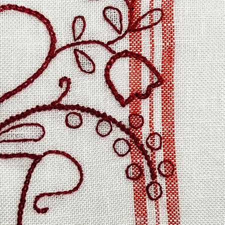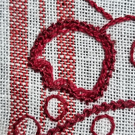 The coral stitch is a simple stitch that involves forming simple knots. I have always seen this stitch associated with a chain stitch.