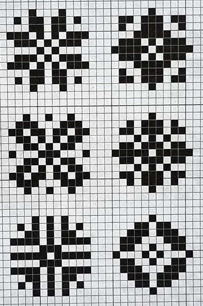 Here is the grid pattern to embroider the basket. Work in the same way as for the heart, on 3 threads and by packs of 2 times 3 threads.