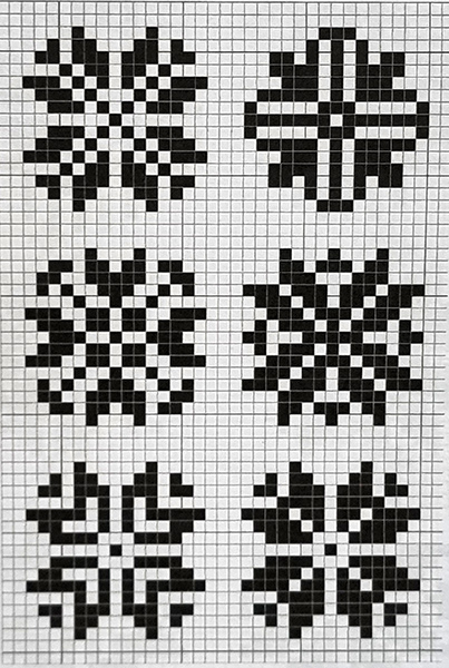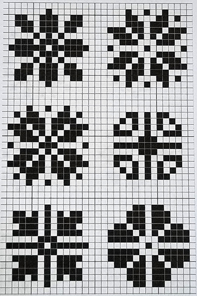 With the Perle cotton 815, embroider now the star patterns by referring to the proposed diagram. You must leave an empty square between 2 stars.