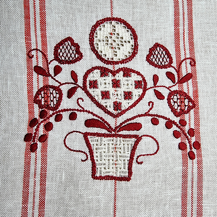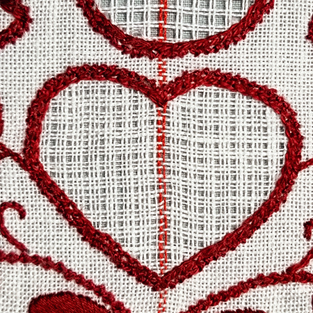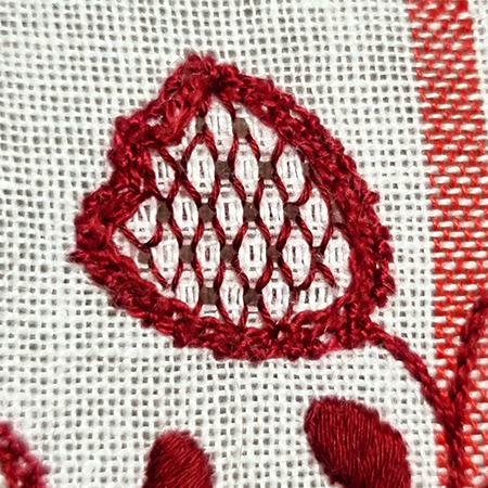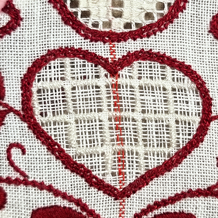 To embroider the inside of this design, I used #8 white and 815 DMC Perle cotton.