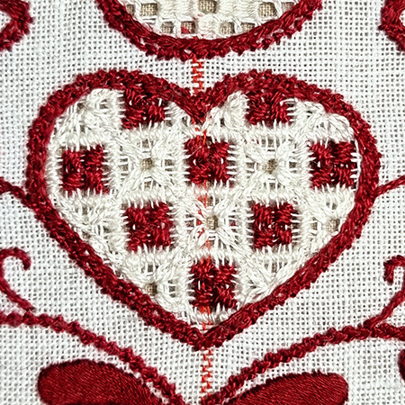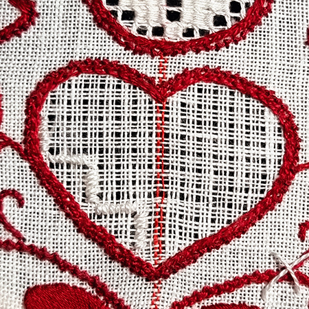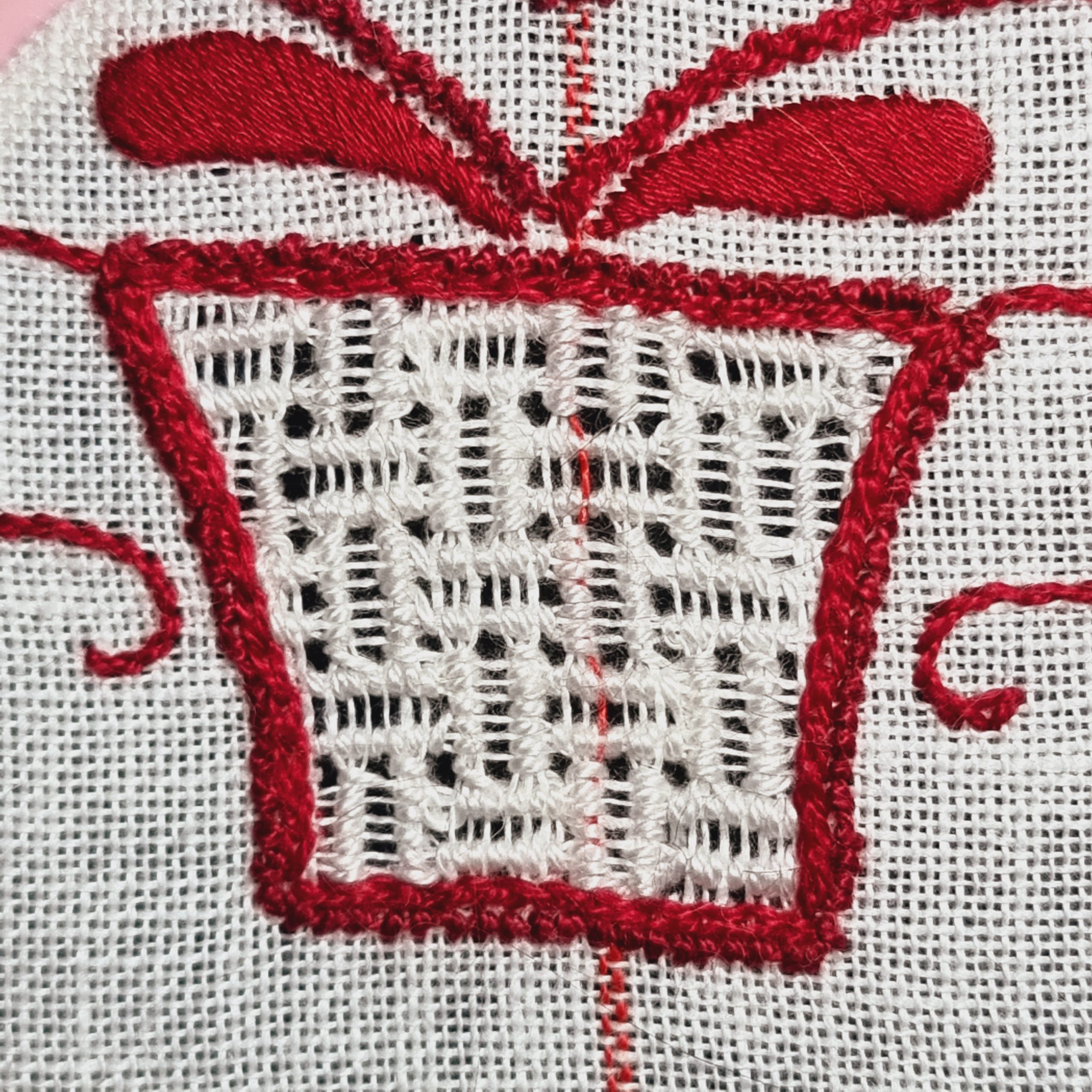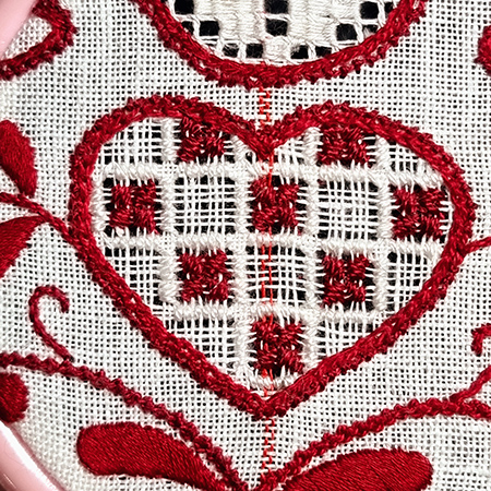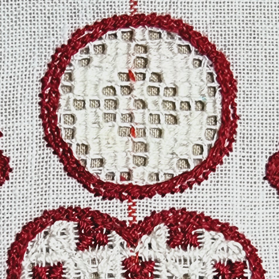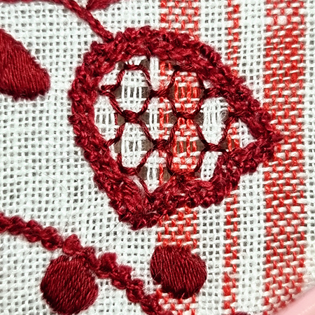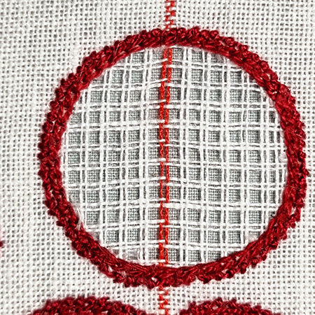 The woven interior of the design is made with DMC “Broder spécial” cotton #25 white.