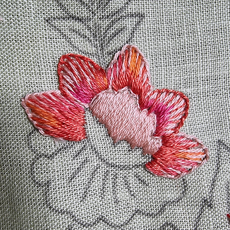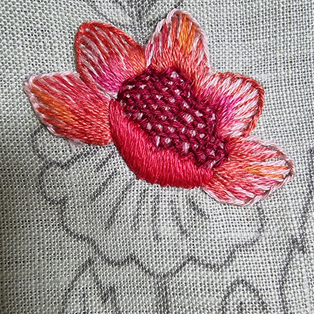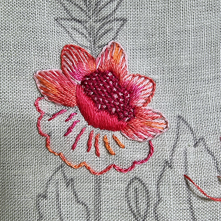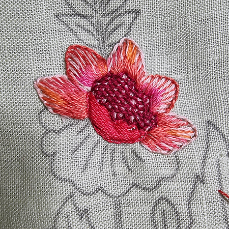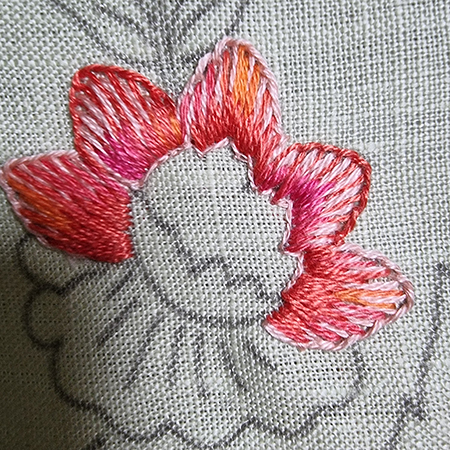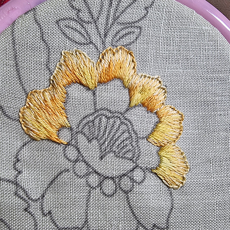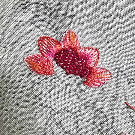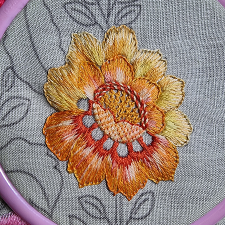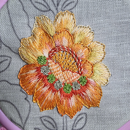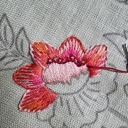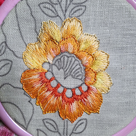 To make the orange flower, I added two new threads.