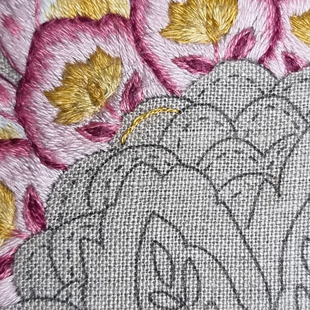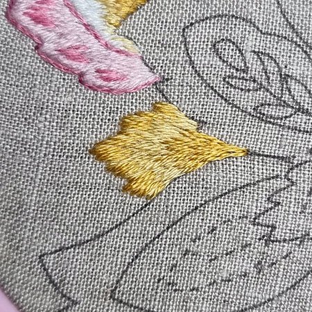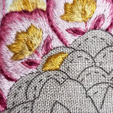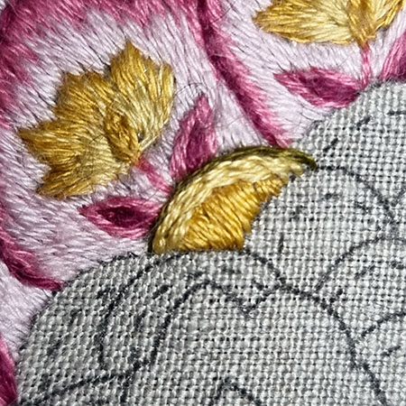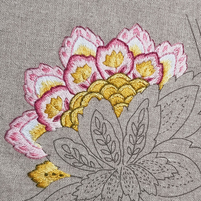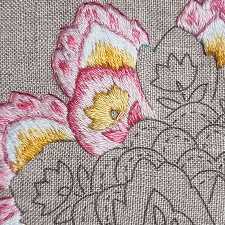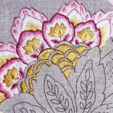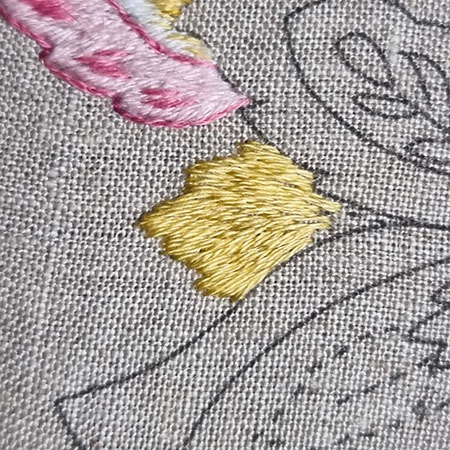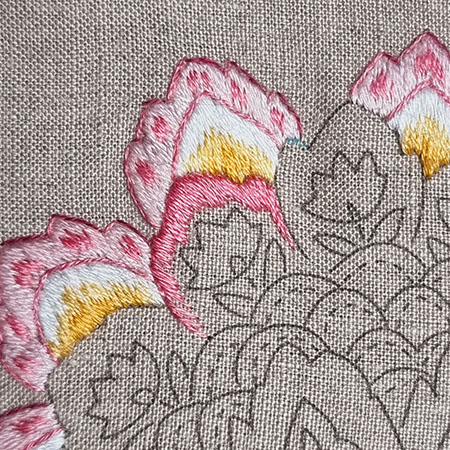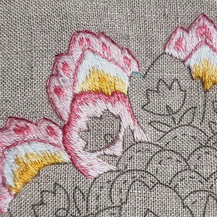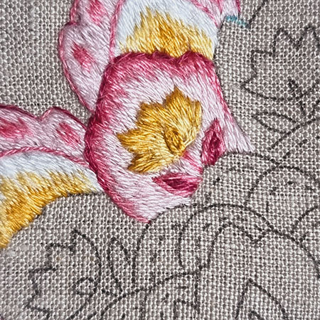 I remind you that to obtain a beautiful result with patterns made with satin or long and short stitch, it is recommended to first outline them in backstitch with 1 thread.