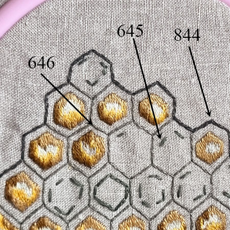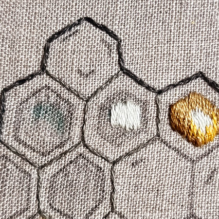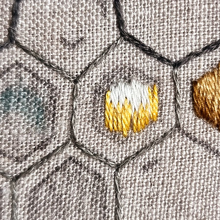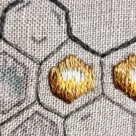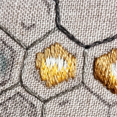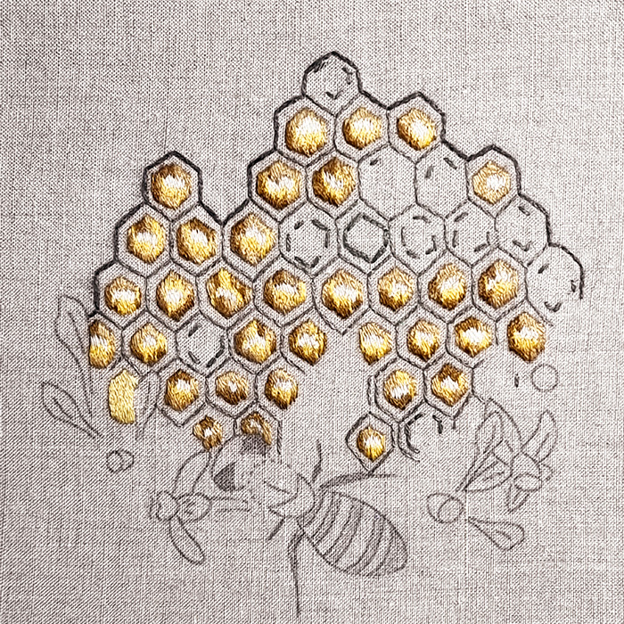 This article is dedicated to the realization of the honeycombs which form the background of this embroidery.