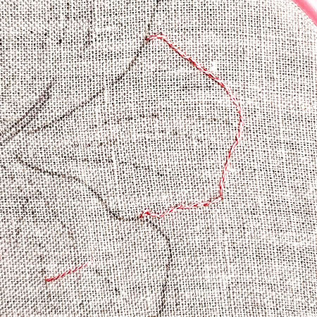 Préparer le travail du pétale en le soulignant au point arrière repiqué avec la couleur 760 et 1 fil.