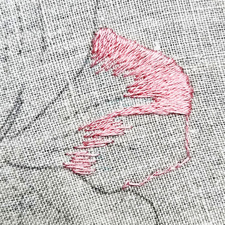Ce pétale est brodé avec les couleurs n° 760, 893, 817 et 816.