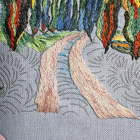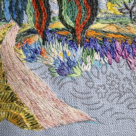 Finally, we will finish with the grass bordering the path, where textures and shades are treated with greater precision to reinforce the impression of proximity and relief.