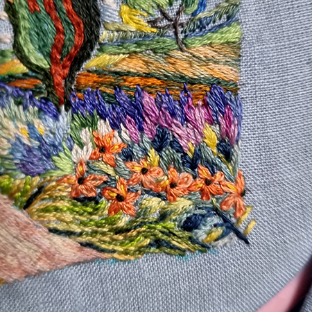 In this fourth stage of the Provence project, we first turn our attention to the path that gently winds its way between the cypress trees and structures the entire landscape. This path is essential and invites us to enter into the composition.