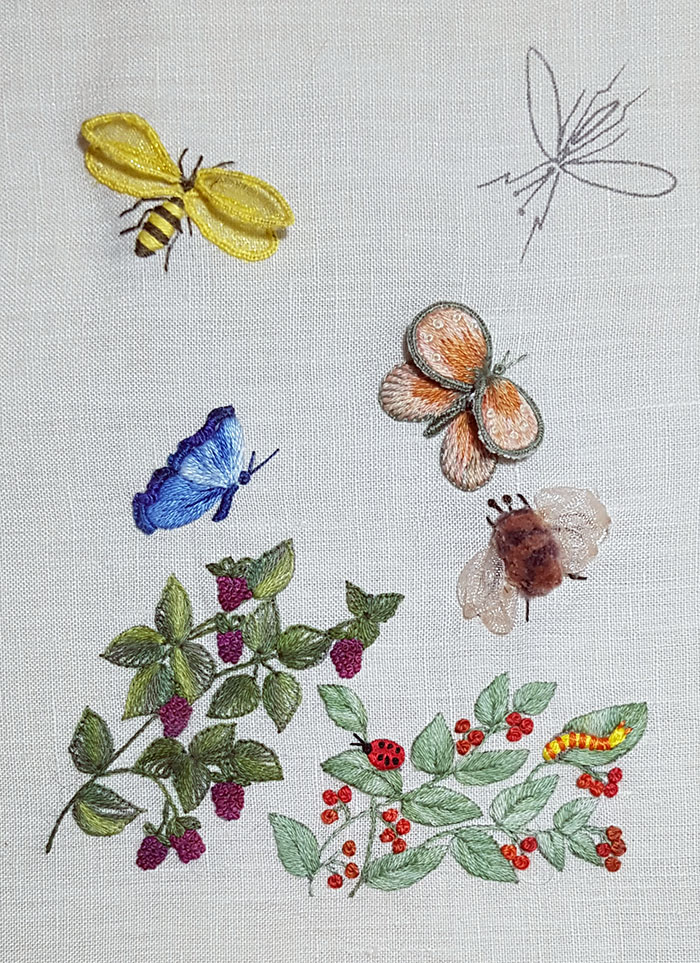 In the 5th part of this project we will embroider the wasp in stumpwork.