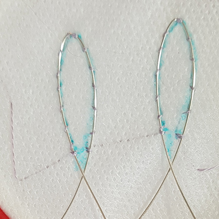 As previously for other insects, sew the wire on the wing contour using small dots with 1 thread.