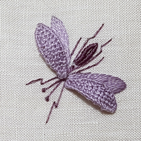 Here is my method to affix the stumpwork parts on the finished embroidery.