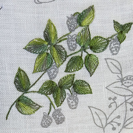 The stems are embroidered in stem stitch with 1 thread.