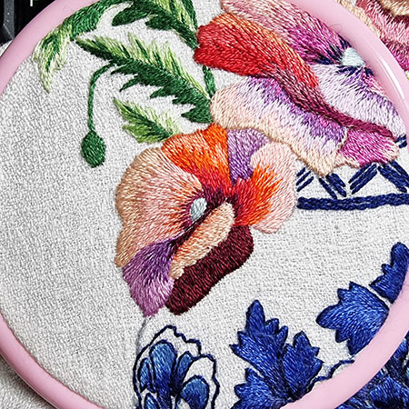 You’ll find thread details below, as well as photos enabling you to embroider this flower with ease.